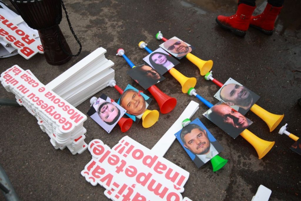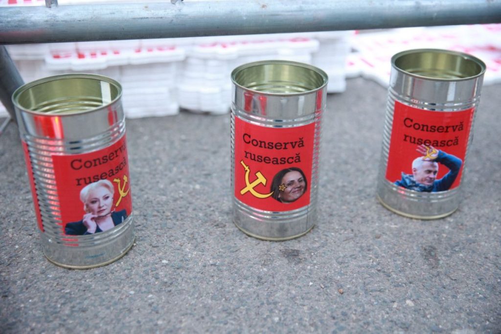Pentru a transmite un mesaj ironic la adresa celor considerați „portavoci” ale propagandei, participanții s-au înarmat cu pancarte, conserve și trompete de jucărie, invitându-i simbolic pe cei vizați la un „călduros Marș la Moscova!”.