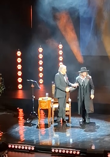 A făcut mai multe glume, iar, spre final, a coborât de pe cal și i-a sărutat mâna lui Florin Piersic. A făcut și câtrva declarații: „Aș vrea să vă mulțumesc foarte mult, mama e în sală, dar țin să spun asta. Nu cred că există topuri pentru actori, care sunt mai mari, mai buni profesional, nu cred în asta, dar cred că putem să ne gândim care actor e cel mai iubit.