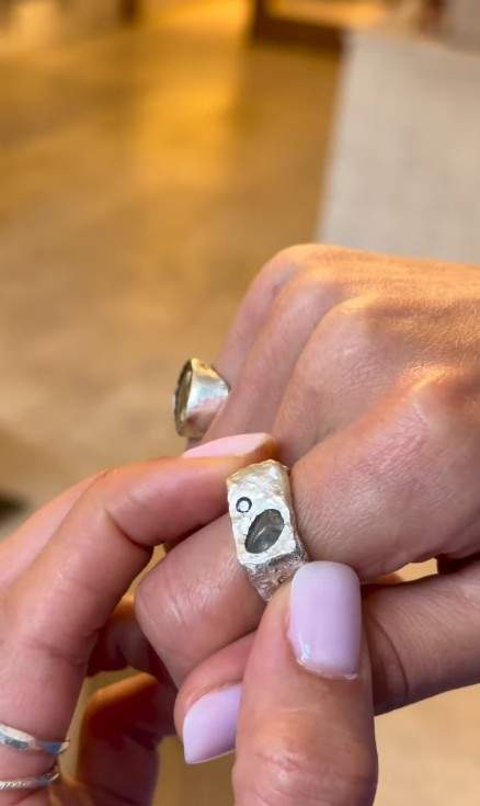 Ni s-a părut cool, am mers la ei cu poze de inspirație de pe Pinterest și suntem îndrăgostiți de ce ne-a ieșit, sunt din argint, am adăugat și pietre” (…) P.S.:70% le-au făcut în mod real cei de la atelier, ghidați de noi, dar, hei, am fost implicați în tot procesul de creație al unui inel unic, personalizat”, a scris Oana Moșneagu, pe Instagram.