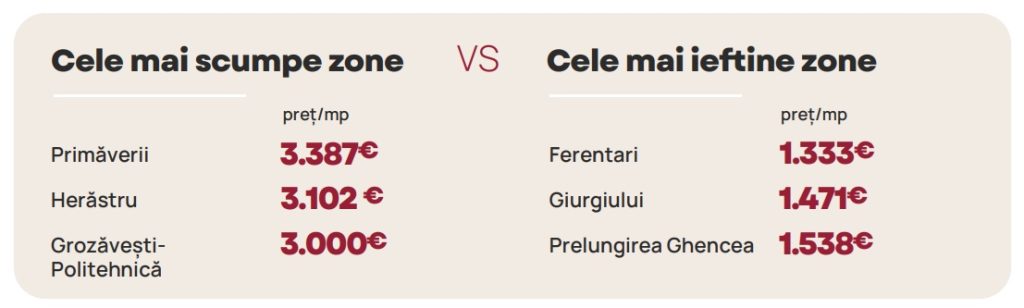 Aceasta este depășită doar de zona Primăverii, unde prețul mediu ajunge la 3.387 euro/mp, iar podiumul este completat de Grozăvești-Politehnică, unde un metru pătrat a ajuns să coste, în medie, 3.000 de euro.